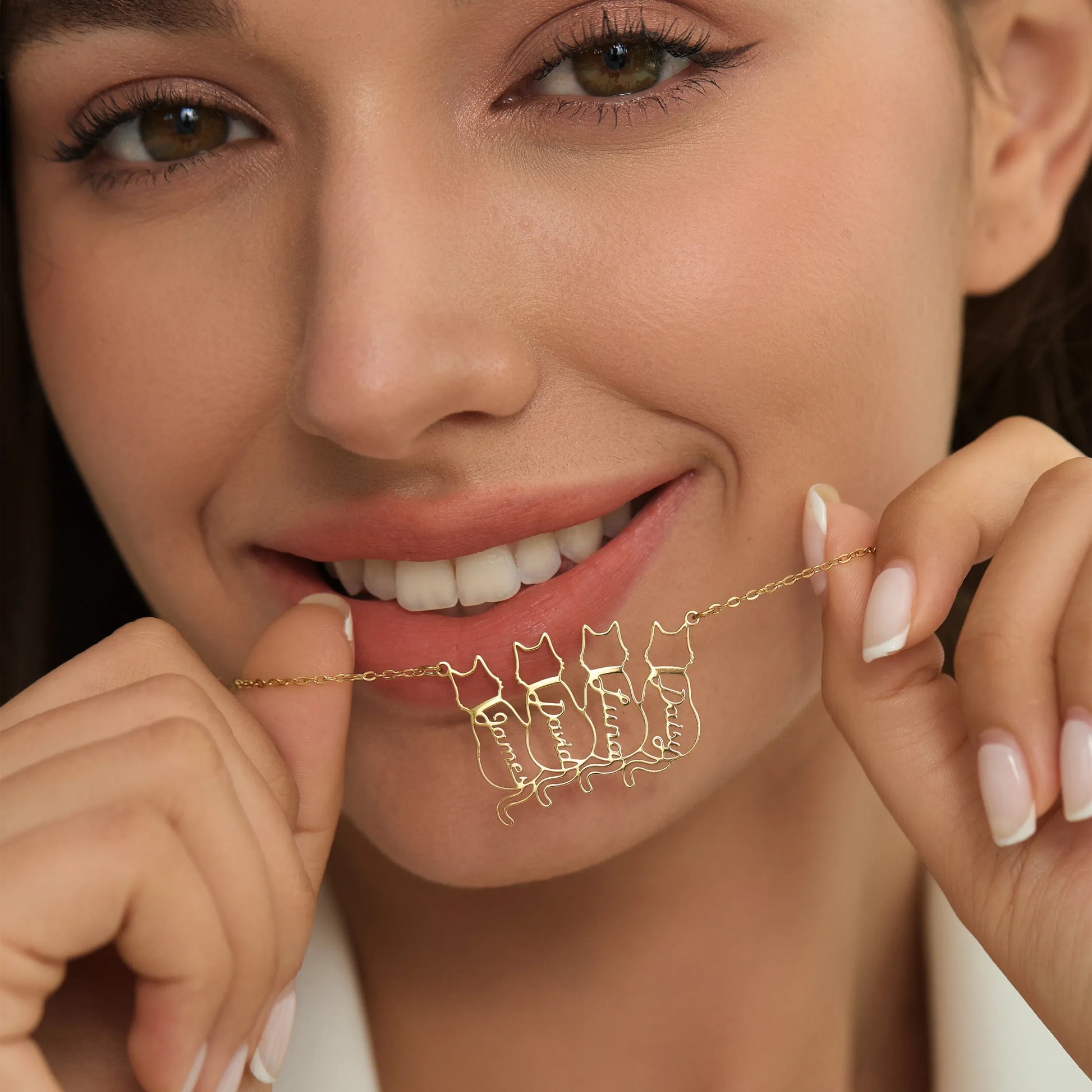 Diese atemberaubende Halskette ist die ideale Hommage an die einzigartige Bindung zu Ihrem vierbeinigen Freund. Es ist fein gearbeitet und verfügt über einen entzückenden katzenförmigen Anhänger, der mit dem Namen Ihrer Katze personalisiert werden kann. Eine besondere und bedeutungsvolle Möglichkeit, die Erinnerung an Ihren Begleiter immer bei sich zu haben, was dieses Schmuckstück zu einem unverzichtbaren Accessoire für alle Katzenliebhaber macht.
